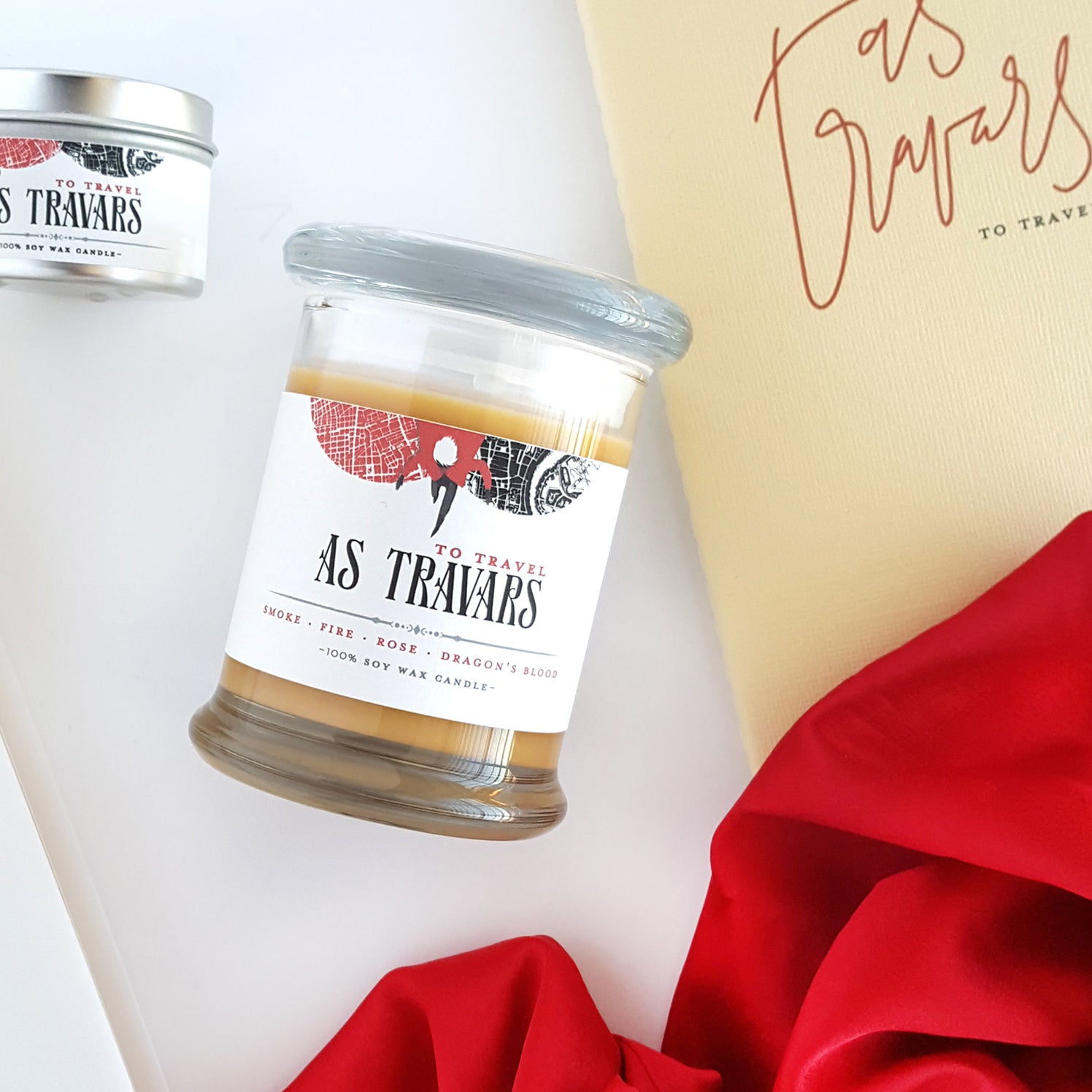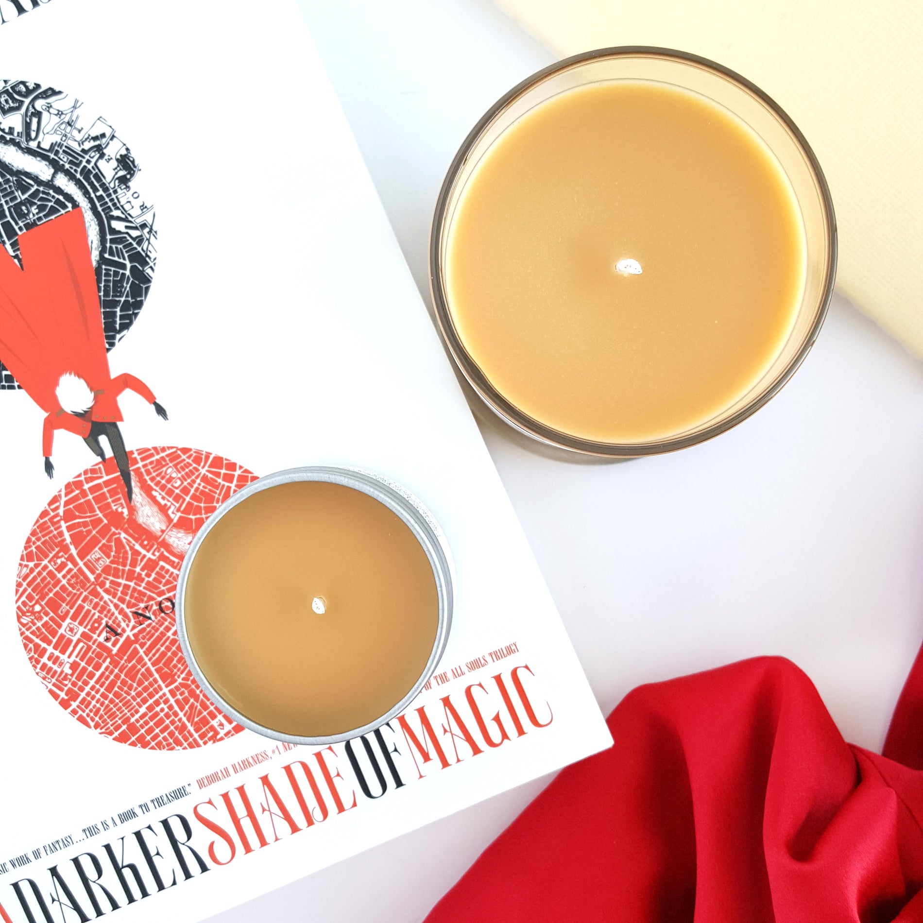 Our "As Travars" candle features a little bit of each London: smoke, fire, roses, and blood (albeit Dragon's Blood!). Step into the world of V.E. Schwab's A DARKER SHADE OF MAGIC with this fab candle that'll take you places in no time!