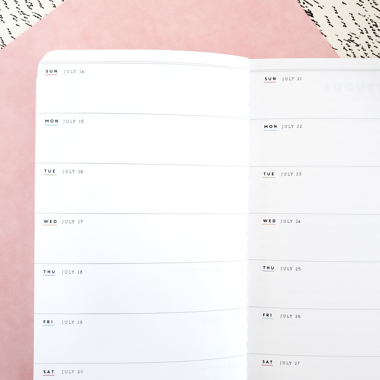 · One week per page