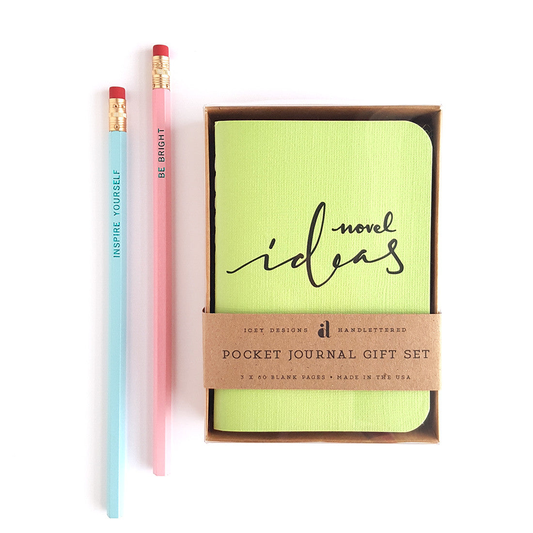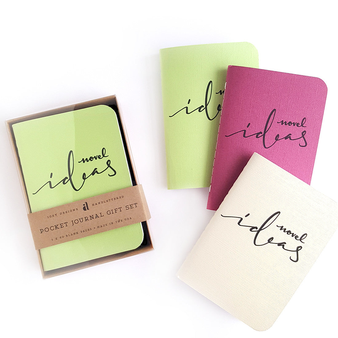 The NOVEL IDEAS gift set comes packed in a beautiful gift-ready box—with a kraft bottom and a clear-top.
