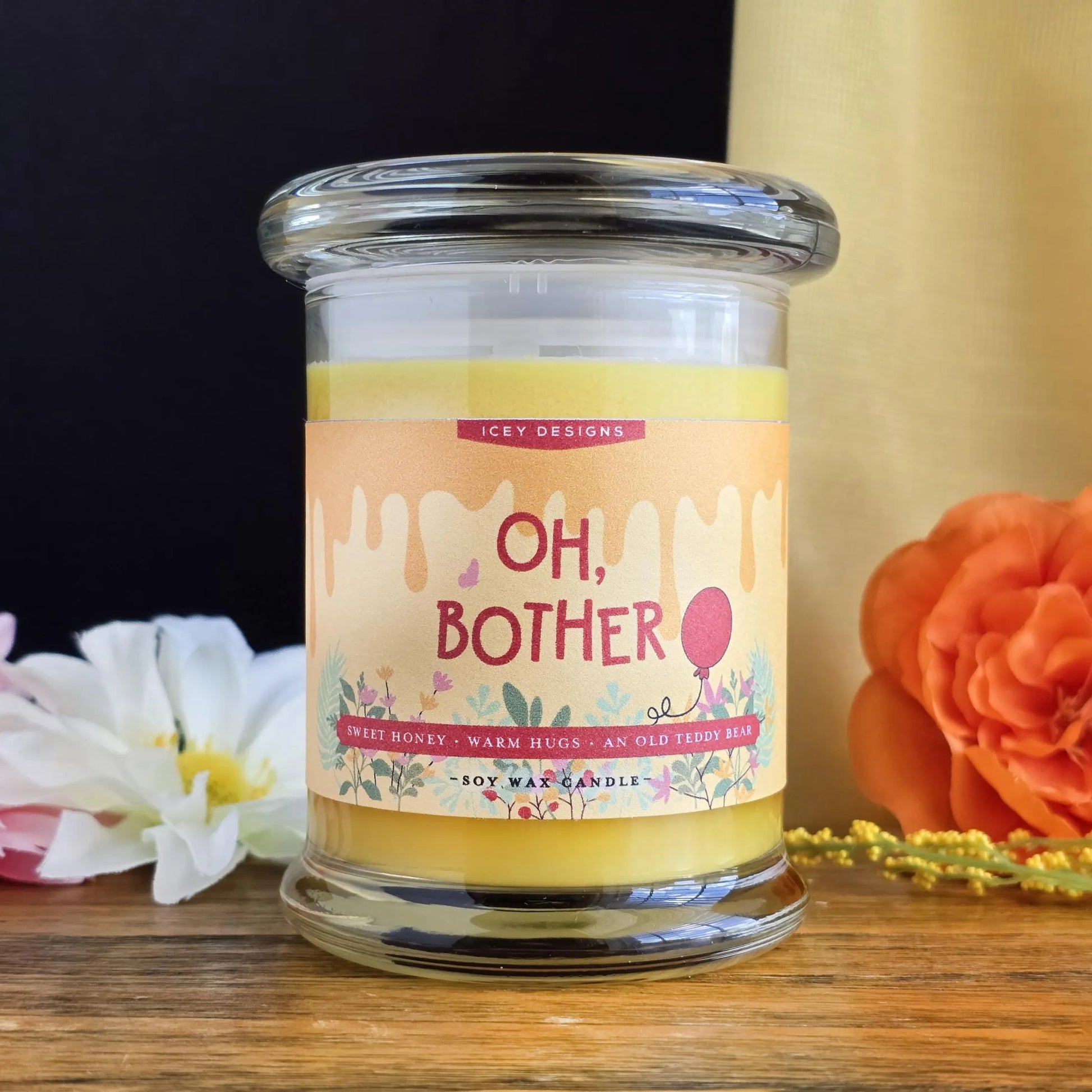 Light up this candle and drift straight into the Hundred Acre Wood. Oh, Bother! is a warm, cozy blend inspired by Pooh’s favorite little comforts—sweet golden honey, soft vanilla, and warm hugs. It smells like slow afternoons, simple joys, and not worrying too much about anything at all. Perfect for when life feels a bit rumbly in your tumbly and you just need to slow down, take a breath, and enjoy something sweet.